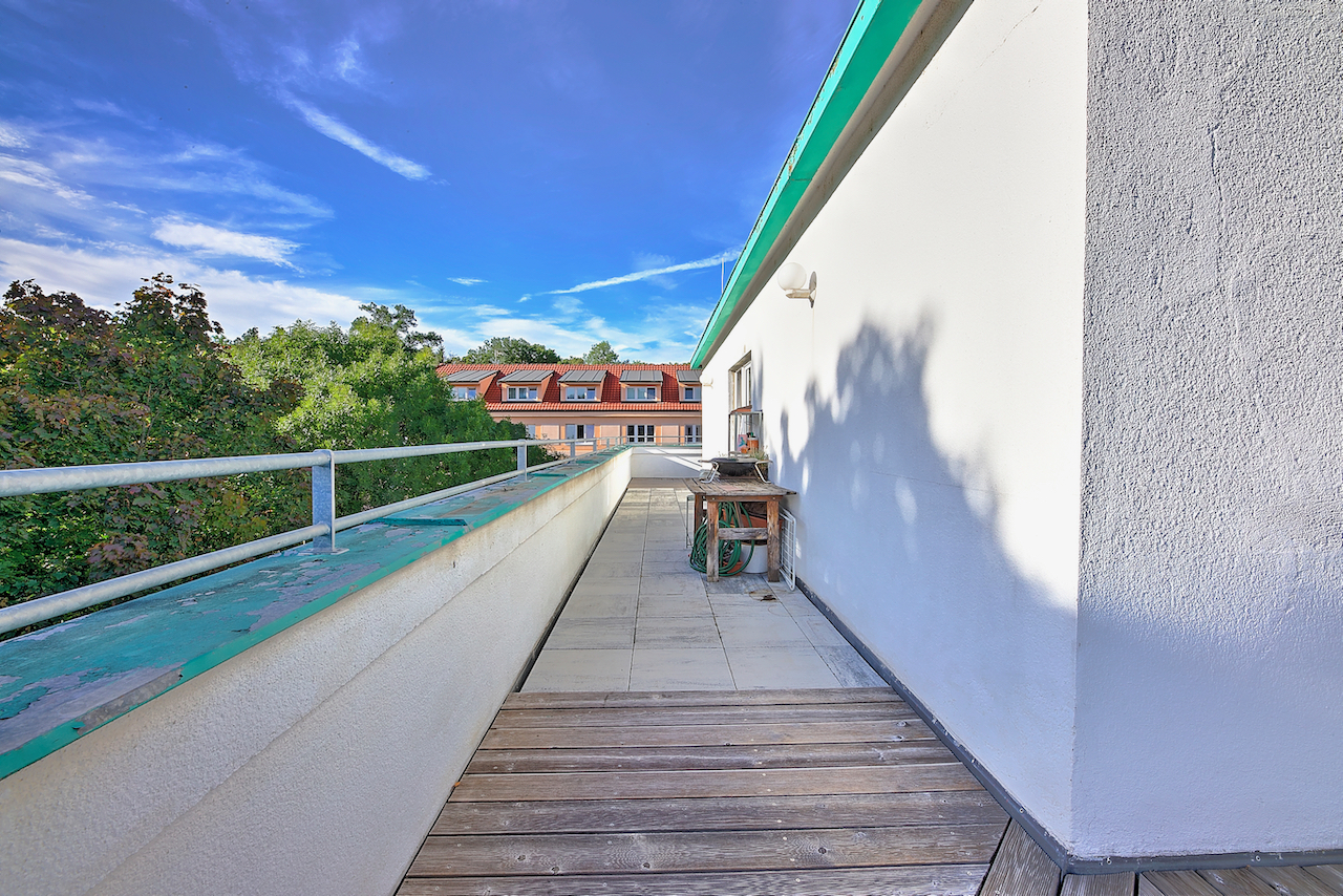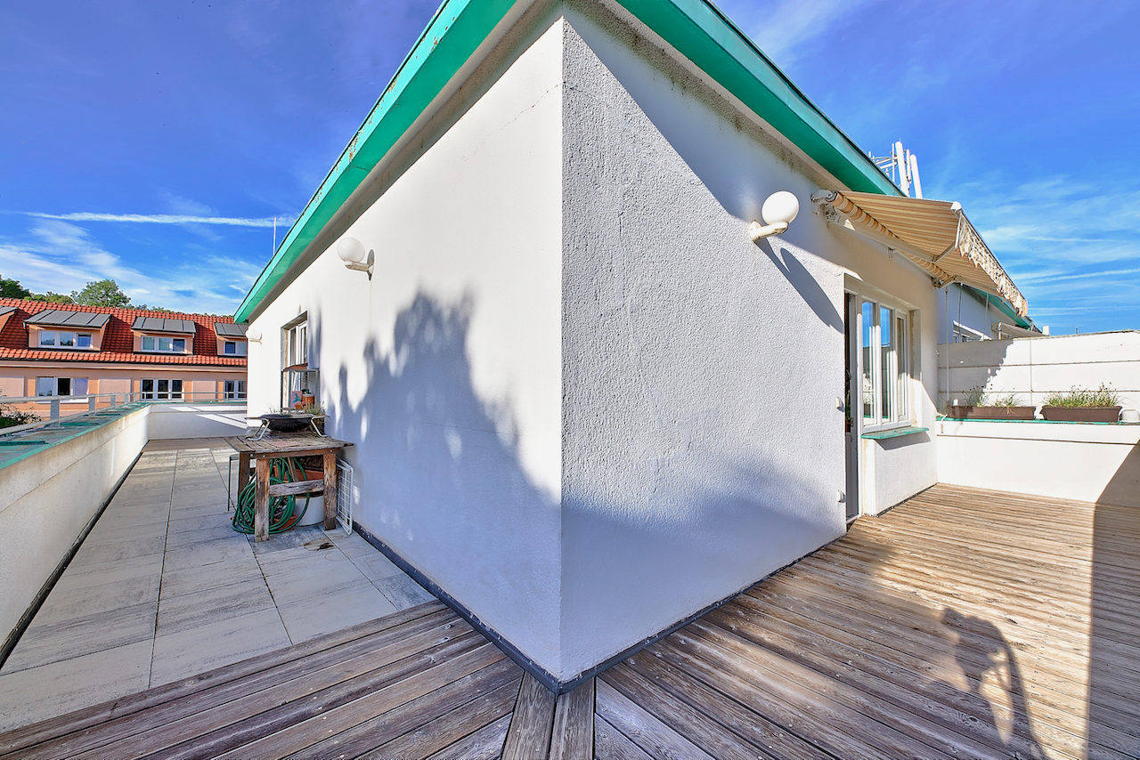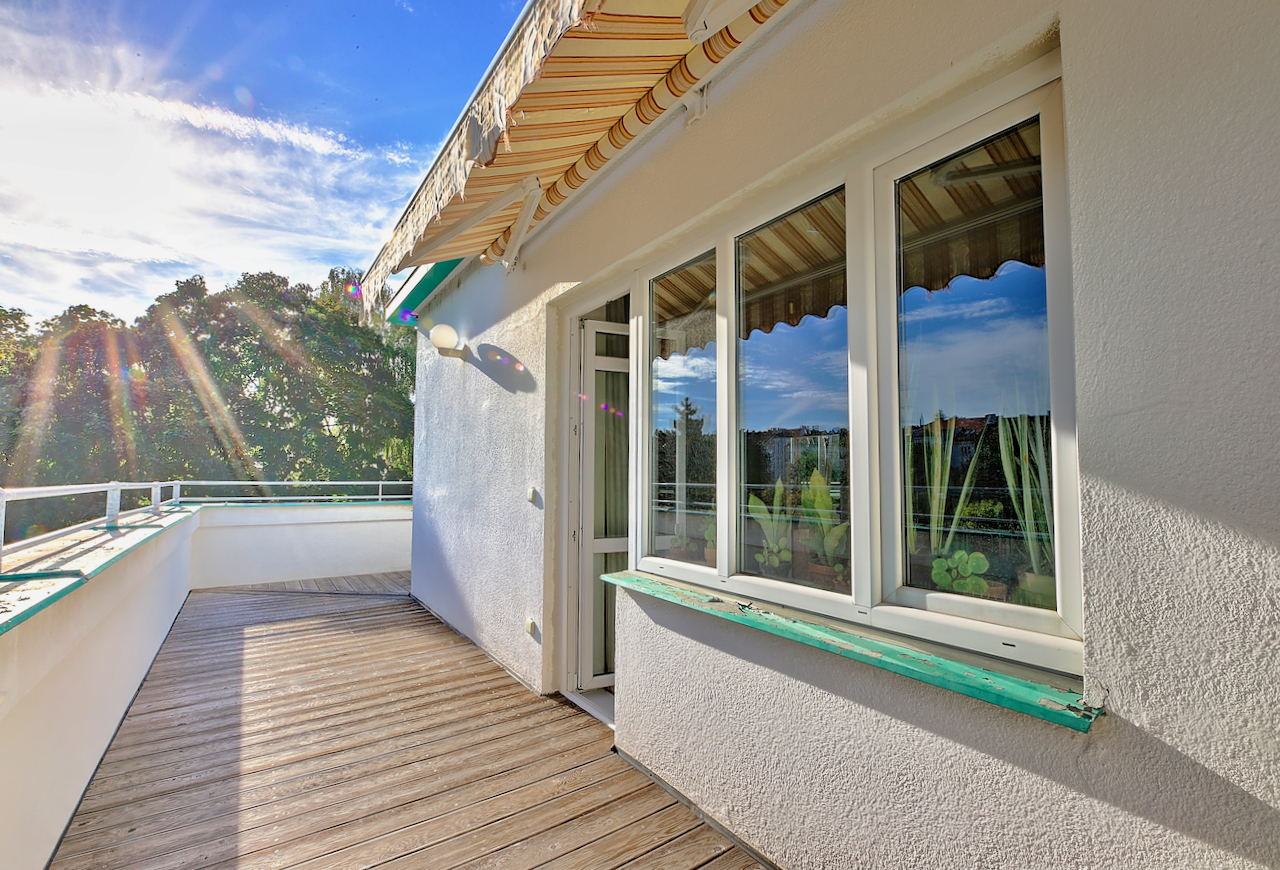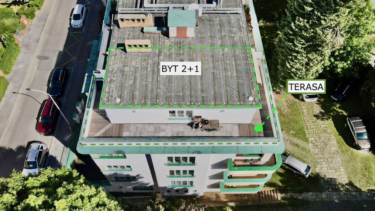 Byt zaujme především velkou terasou, která jej obepíná ze všech stran.