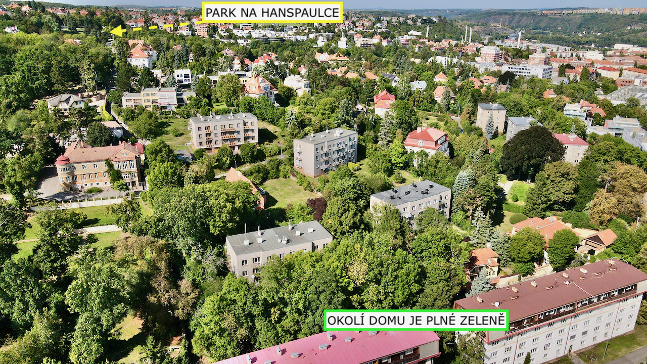 V docházkové vzdálenosti je park Hanspaulka, ideální pro procházky nebo ranní běh.