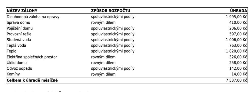 – Příloha k vyúčtování záloh za služby – [ke stažení zde]