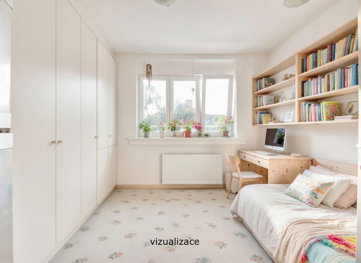 Příjemným benefitem je praktická komora v ložnici a vestavěná skříň naproti vchodu do bytu.