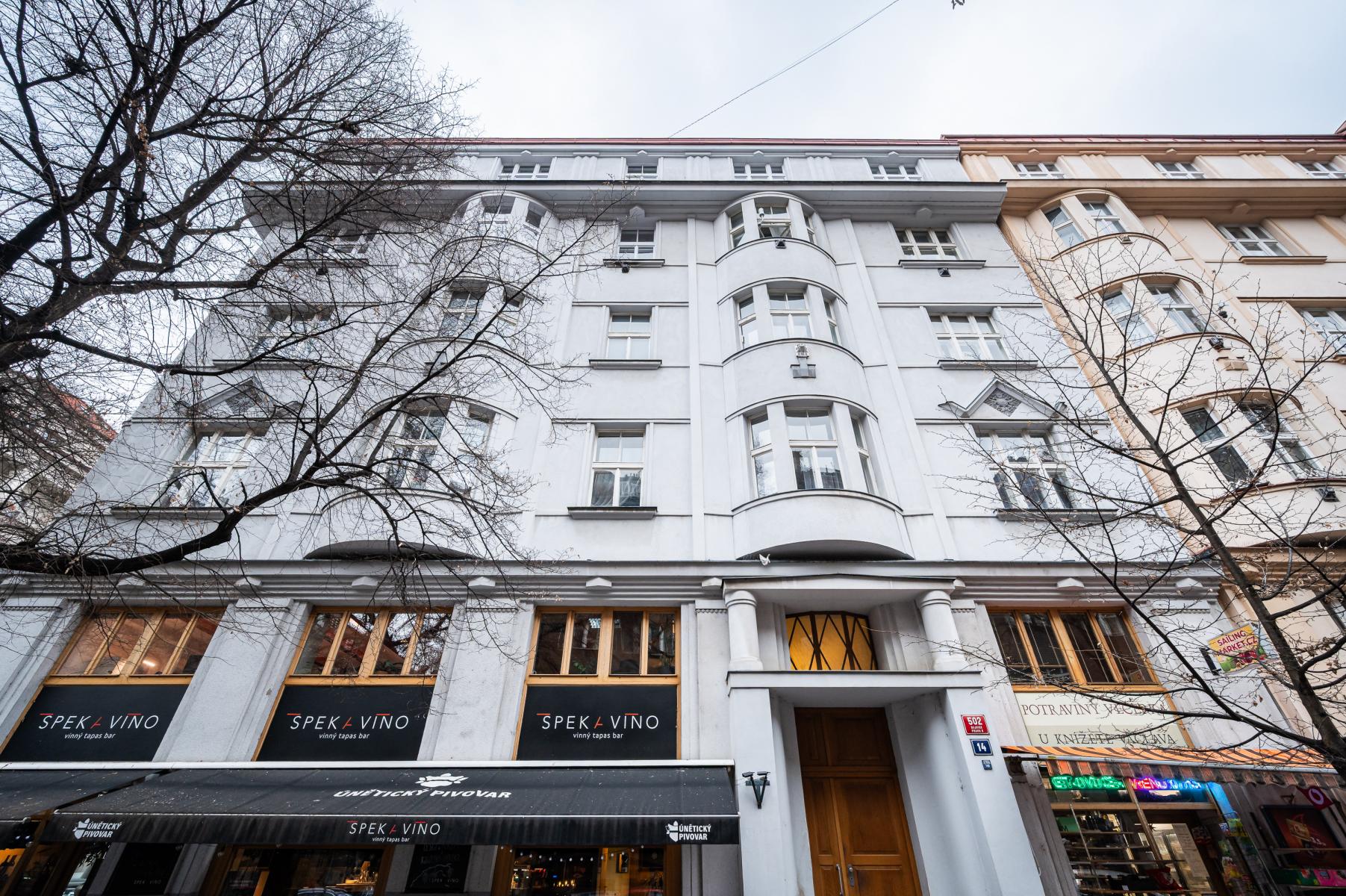Lokalita téměř na půl cesty mezi Hradčanskou a Dejvickou je ideální. Tak akorát pěšky kamkoliv.
