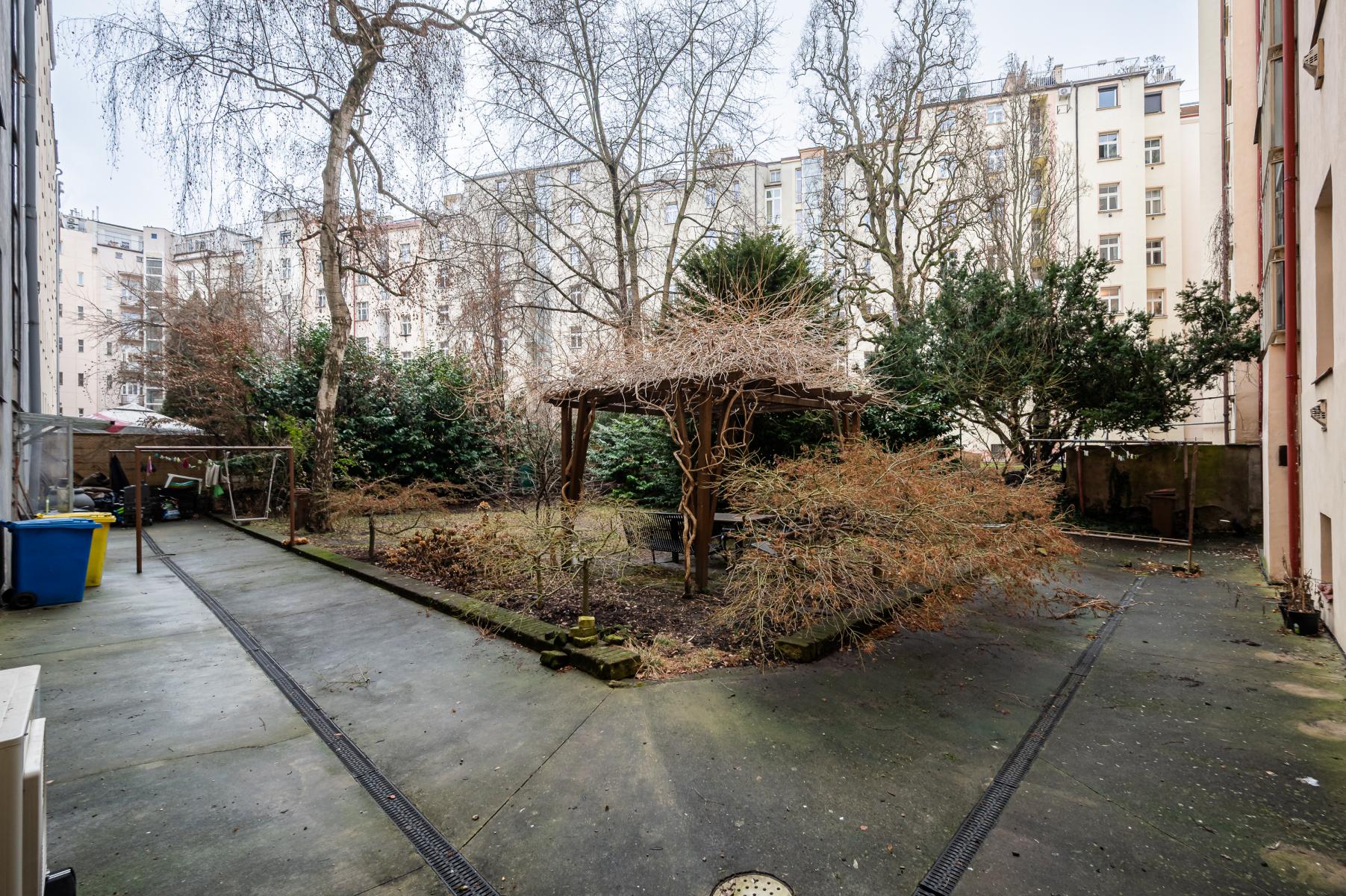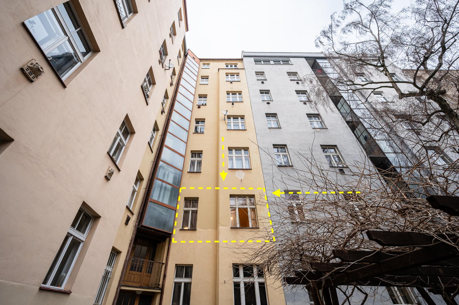 Obě místnosti jsou orientovány na jih do zeleného vnitrobloku se stromy. Světlo a minimum ruchu z ulice.