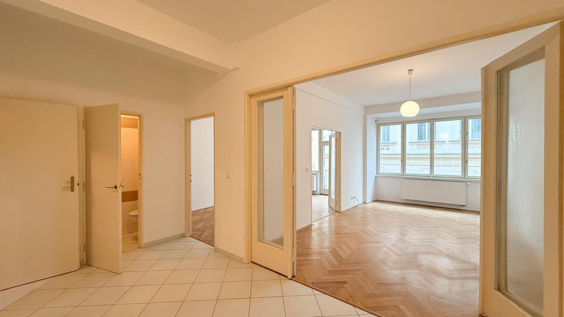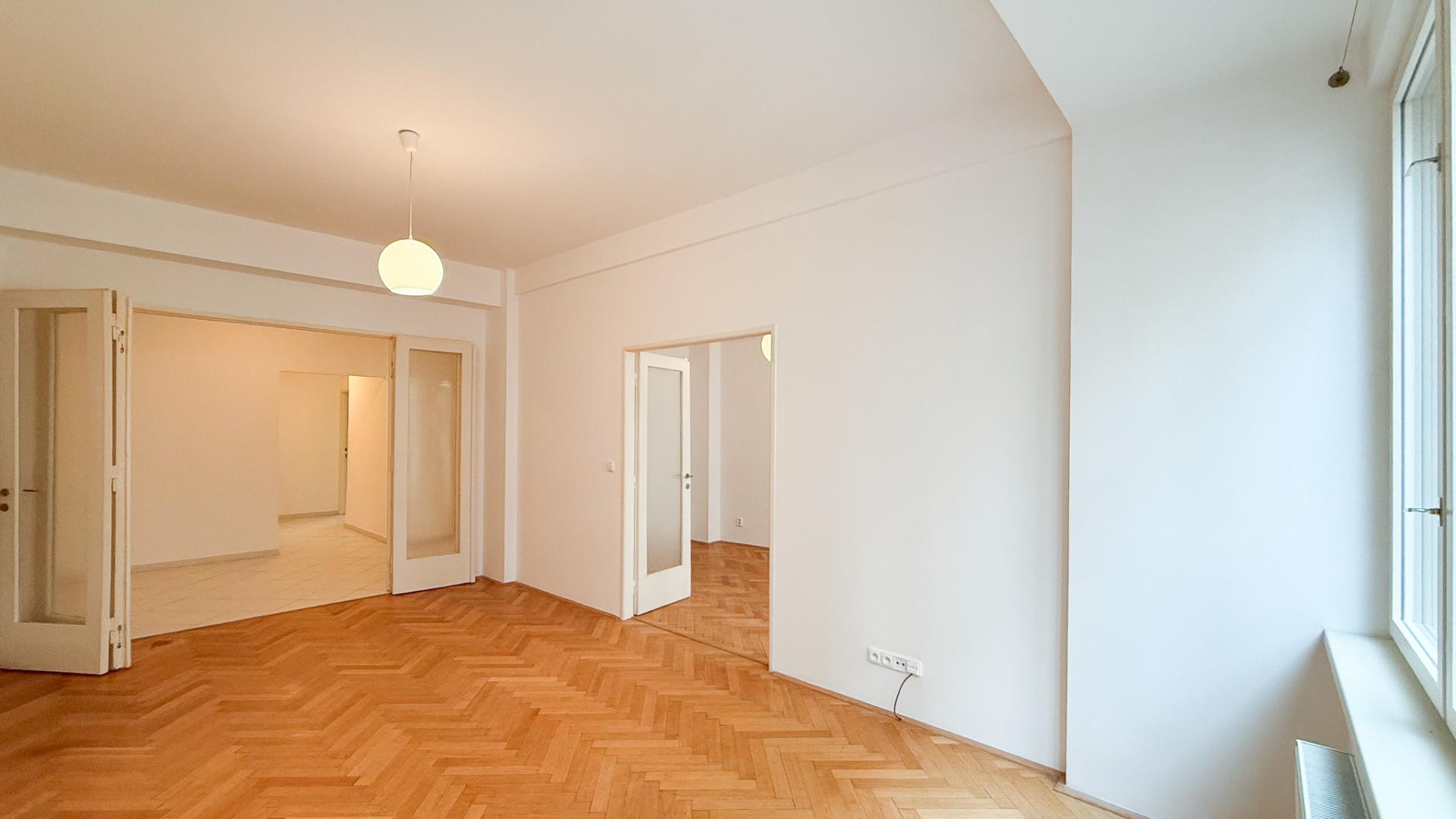 Pronájem nezař. bytu 2+1, 80m2, 2 x WC, šatna, balkon, Staré Město, Praha 1, Bartolomějská ul.