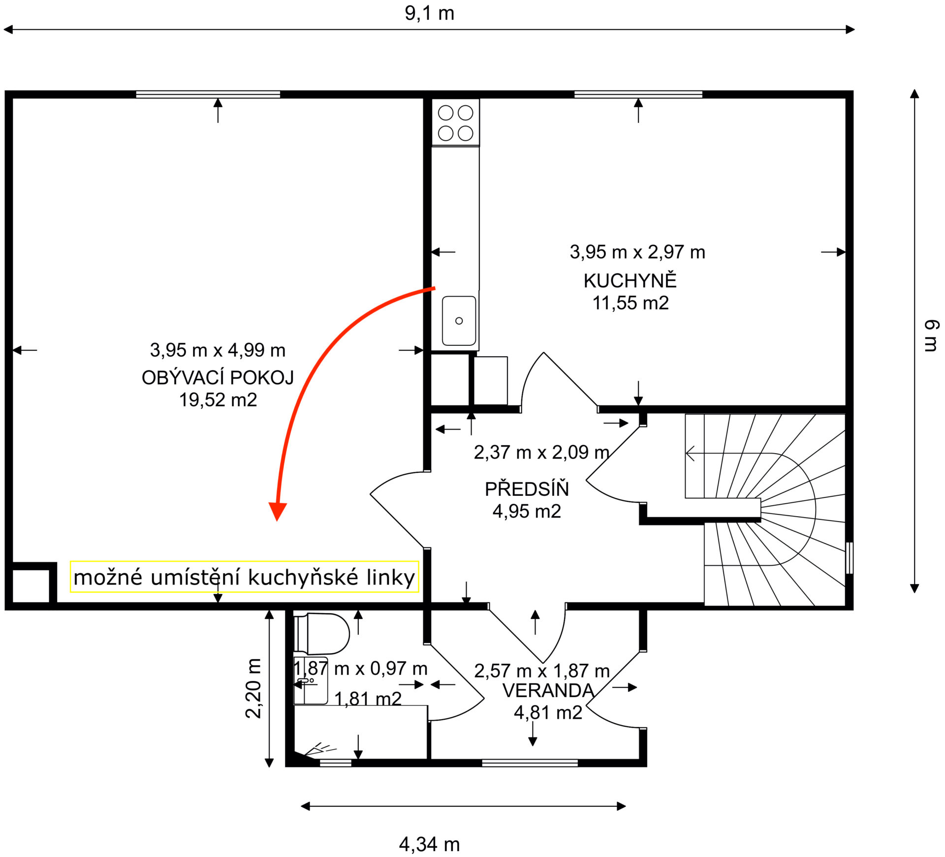 - Předsíň (vnitřní): 4,95 m²