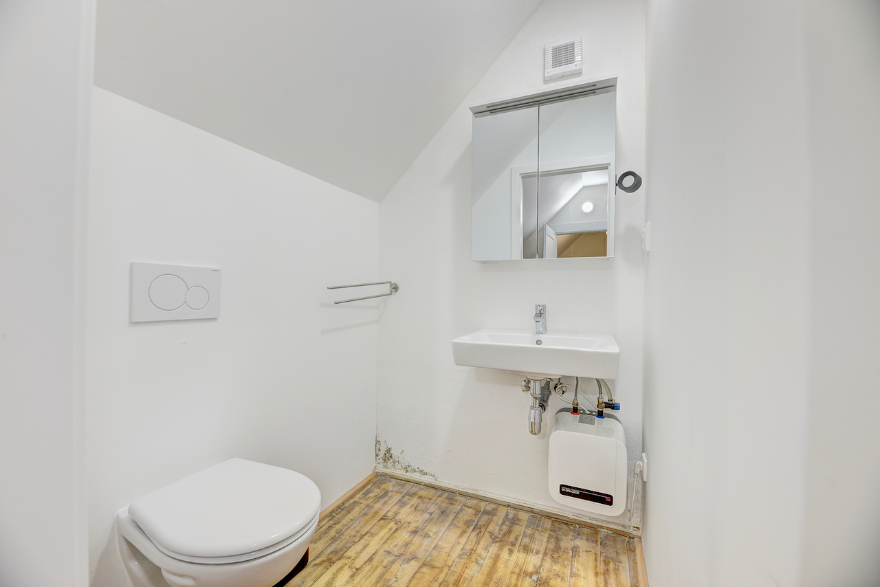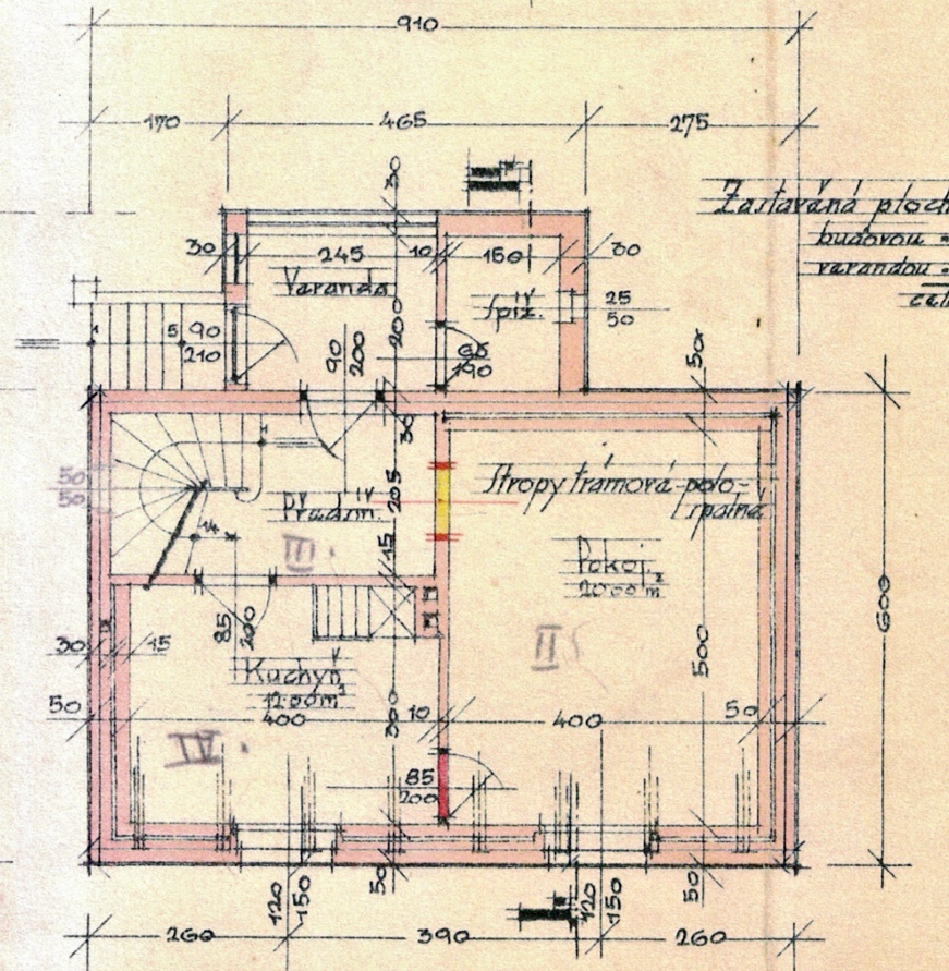 Řešení: odstranění zeminy okolo základů, vložení nopové fólie a zásyp pěnosklem by množství vlhkosti výrazně snížil. - Plíseň v podkroví – po téměř století užívání se objevila na několika místech ve velkém pokoji v podkroví. Důvodem je nižší cirkulace vzduchu zapříčiněná výměnou oken, umístěním nábytku u obvodových zdí a slabší izolací stěn.