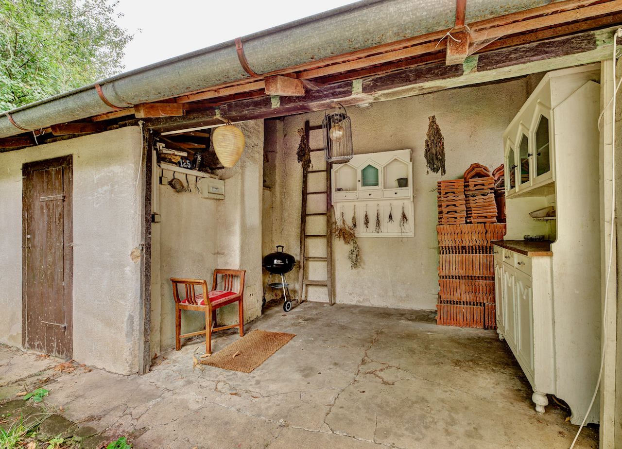 V okamžiku stavby domu byl vybudován i přístavek, který původně sloužil jako prádelna, suchá toaleta a dřevník. Nyní je používán jako pergola a sklad zahradního náčiní.