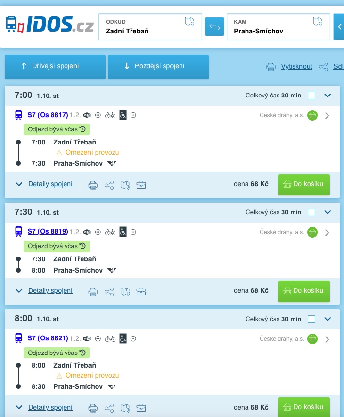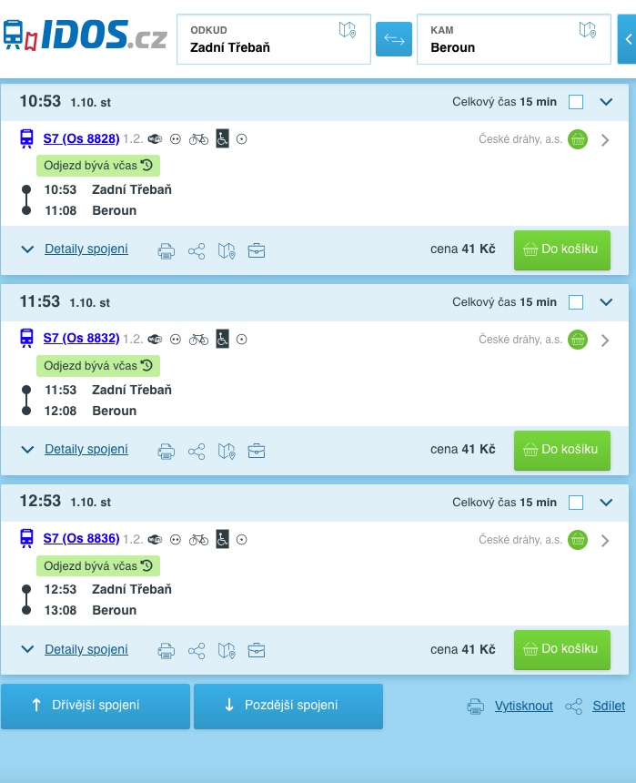- Do Berouna 15 minut, aktuálně 1× za hodinu (rekonstrukce trati)