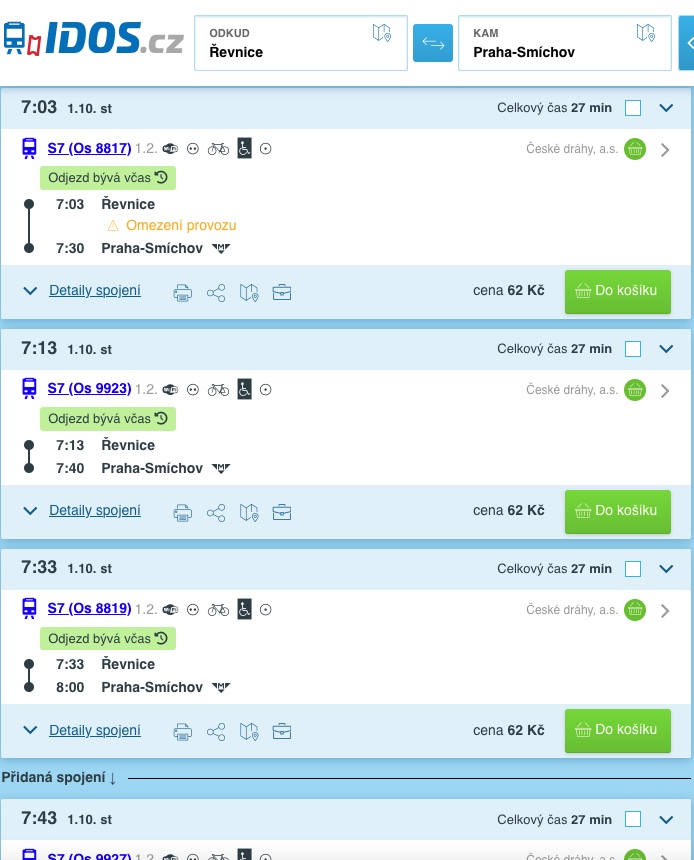 - Ze Řevnic vlaky 4× za hodinu